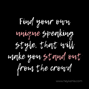 It’s time to get creative + find that unique style that will make you stand out from the crowd. If you want to discover your unique speaking style, take a step back + look within – what do you like + what do you like about yourself!