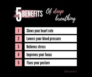 When you breathe deeply, you start to relax + that both lowers your blood pressure + slows your heart rate!